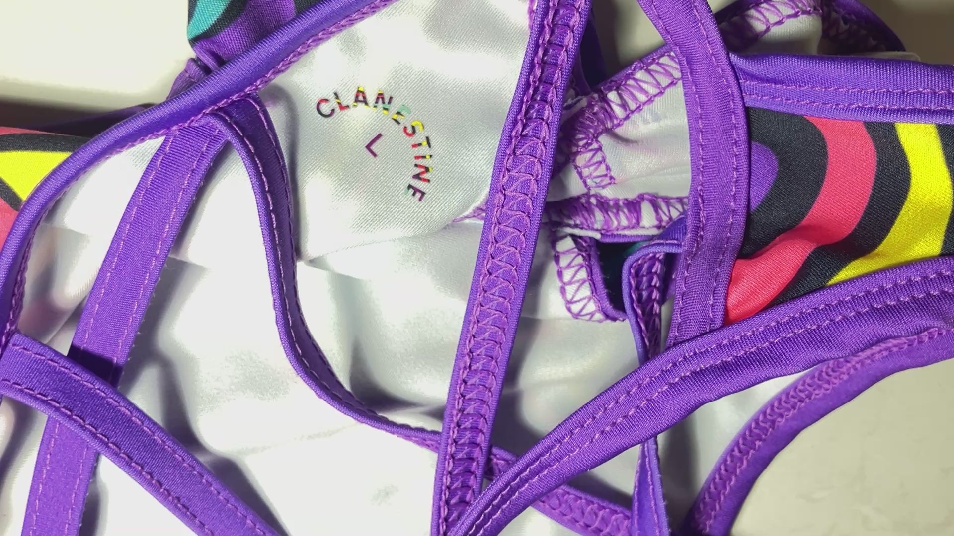 This attention grabbing one-piece fluorescent rainbow bodysuit is the perfect piece for your next music festival/rave or can be easily styled to stand in any crowd. Its sleek design glows in the dark, sculpts every shape and flaunts every curve.